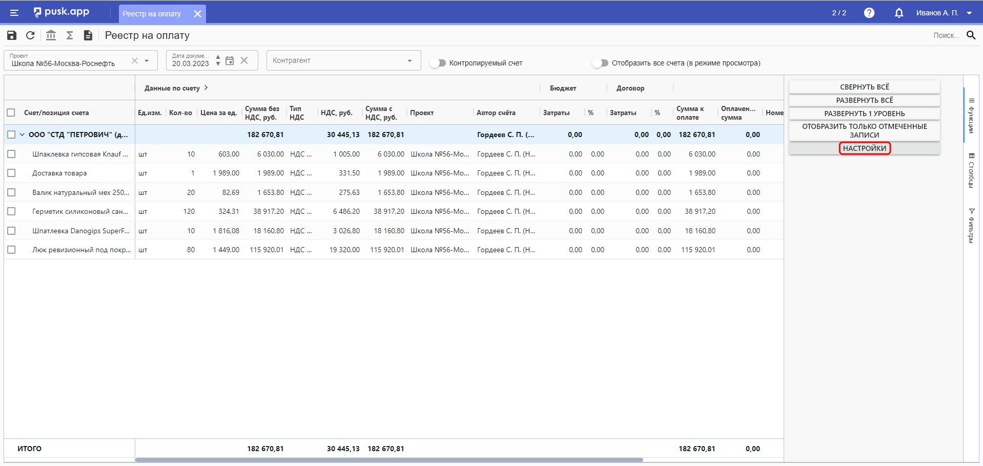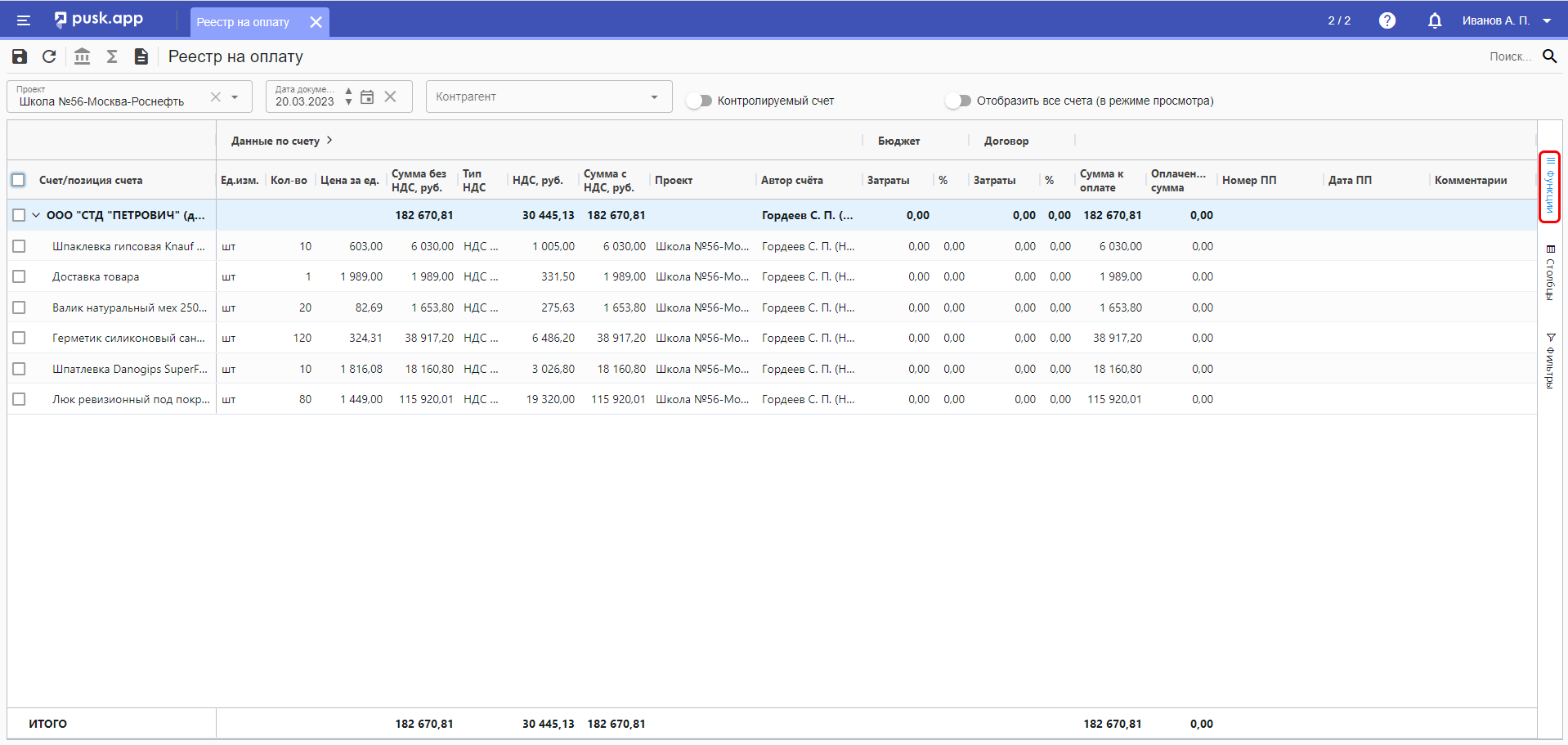 Для доступа к этим параметрам необходимо с правой стороны реестра нажать на кнопку "Функции"
