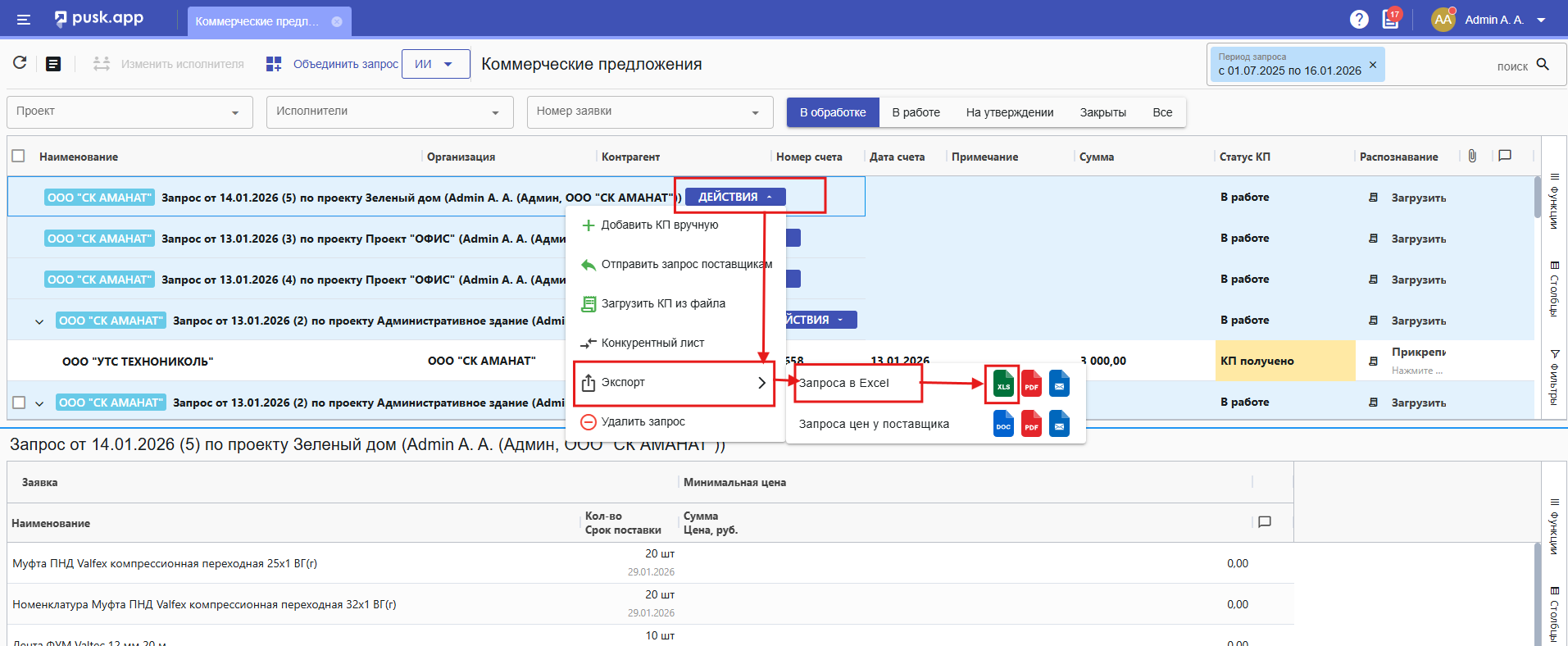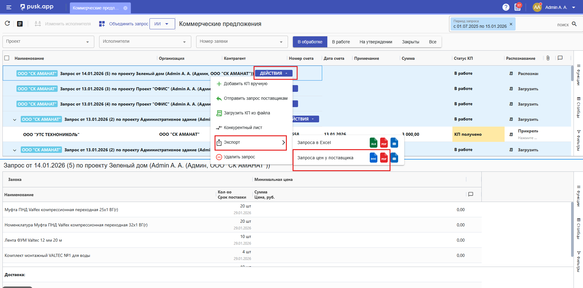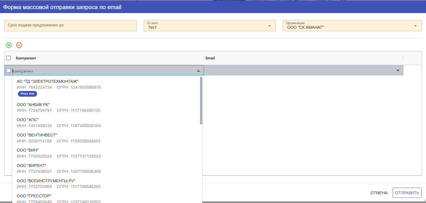 Либо по кнопке Отправить запрос поставщикам
