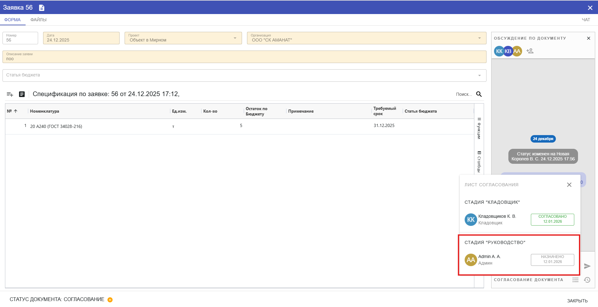 - Согласовать документ
