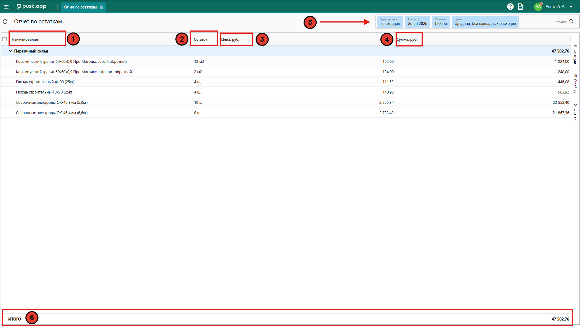 Отчет по остаткам в складе является важным инструментом для управления запасами, планирования закупок и обеспечения бесперебойной работы строительных процессов. Он помогает избежать дефицита материалов и предотвращать излишние закупки, что способствует оптимизации затрат и повышению эффективности строительства.