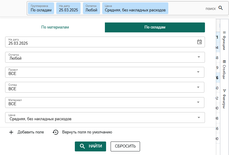 - Для которых при формировании накладной и приемке в разделе "План поставки материалов" был явно указан склад (более подробно по приемке материала тут).