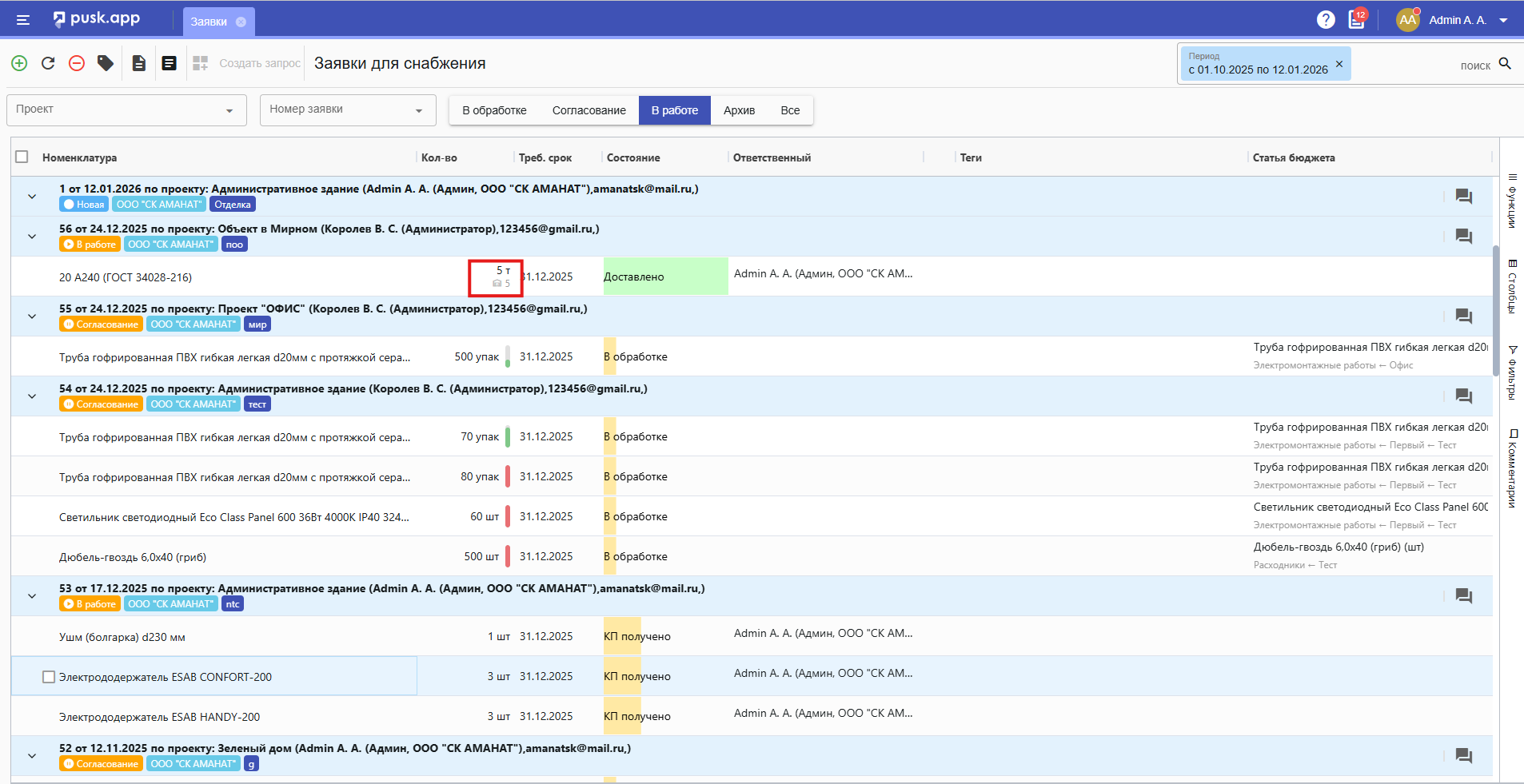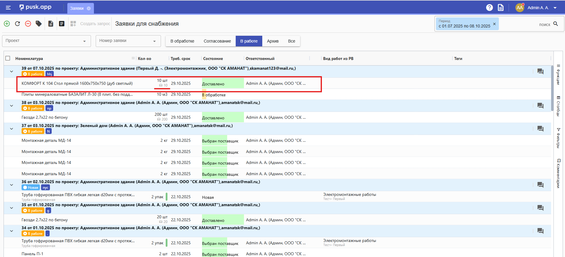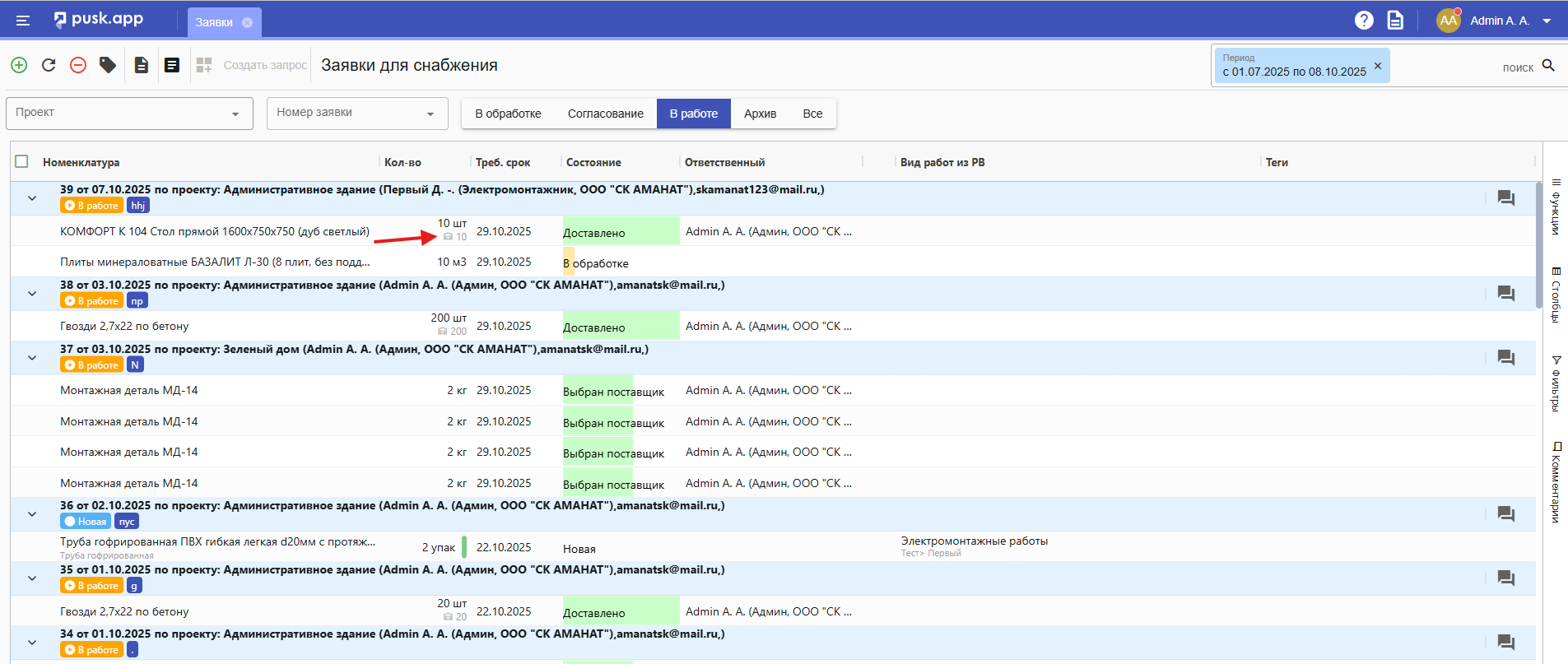 Всё это помогает оптимизировать работу с заявками и упростить процесс снабжения.