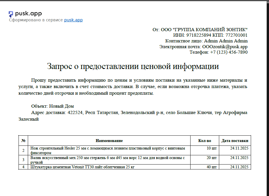 Как будет выглядеть печатная форма перезапроса цен