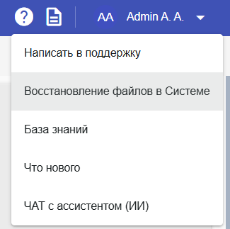 Верхняя панель инструментов ---> иконка "Вопросик" ---> Восстановление файлов в системе