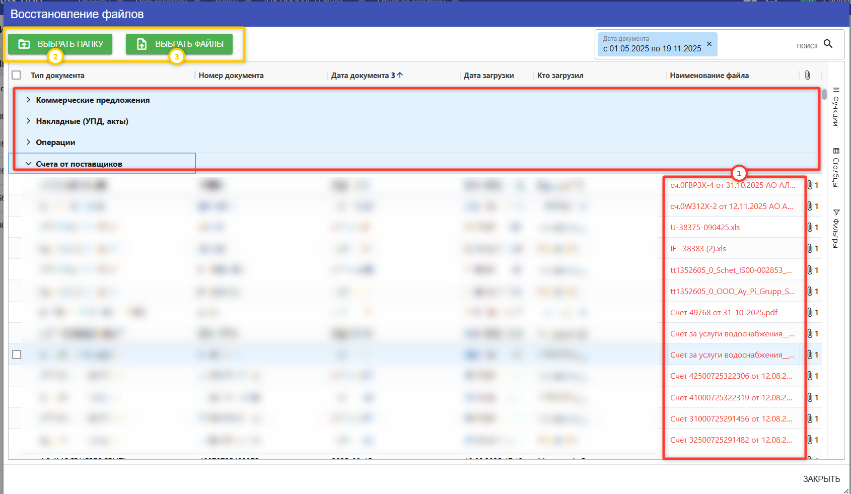Ручная загрузка файлов. Если вы точно знаете, какие файлы отсутствуют в системе, можно загрузить их выборочно и прикрепить к нужным документам через "скрепку"
