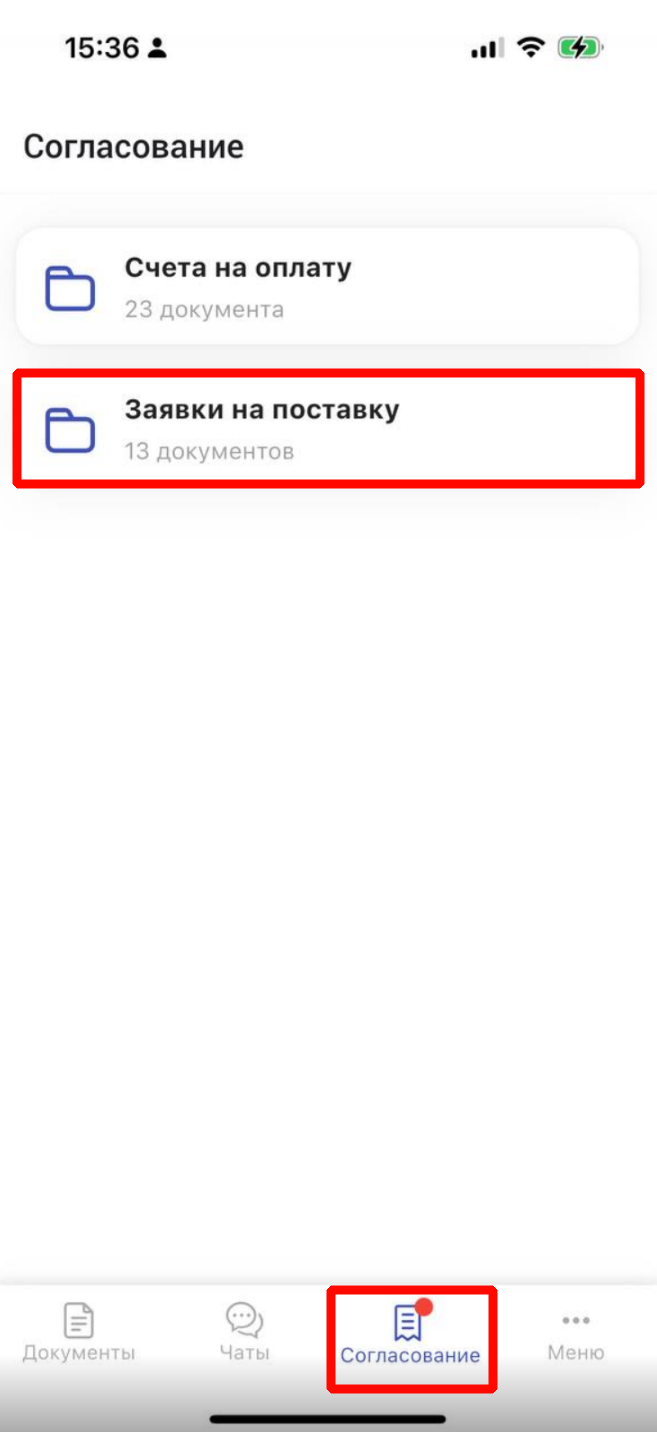 В разделе «Согласование» отображаются документы, которые необходимо согласовать.