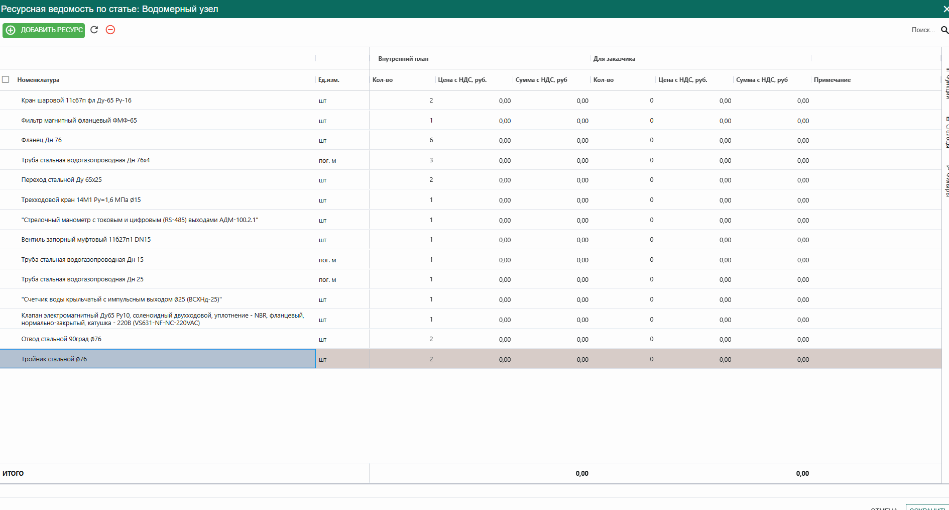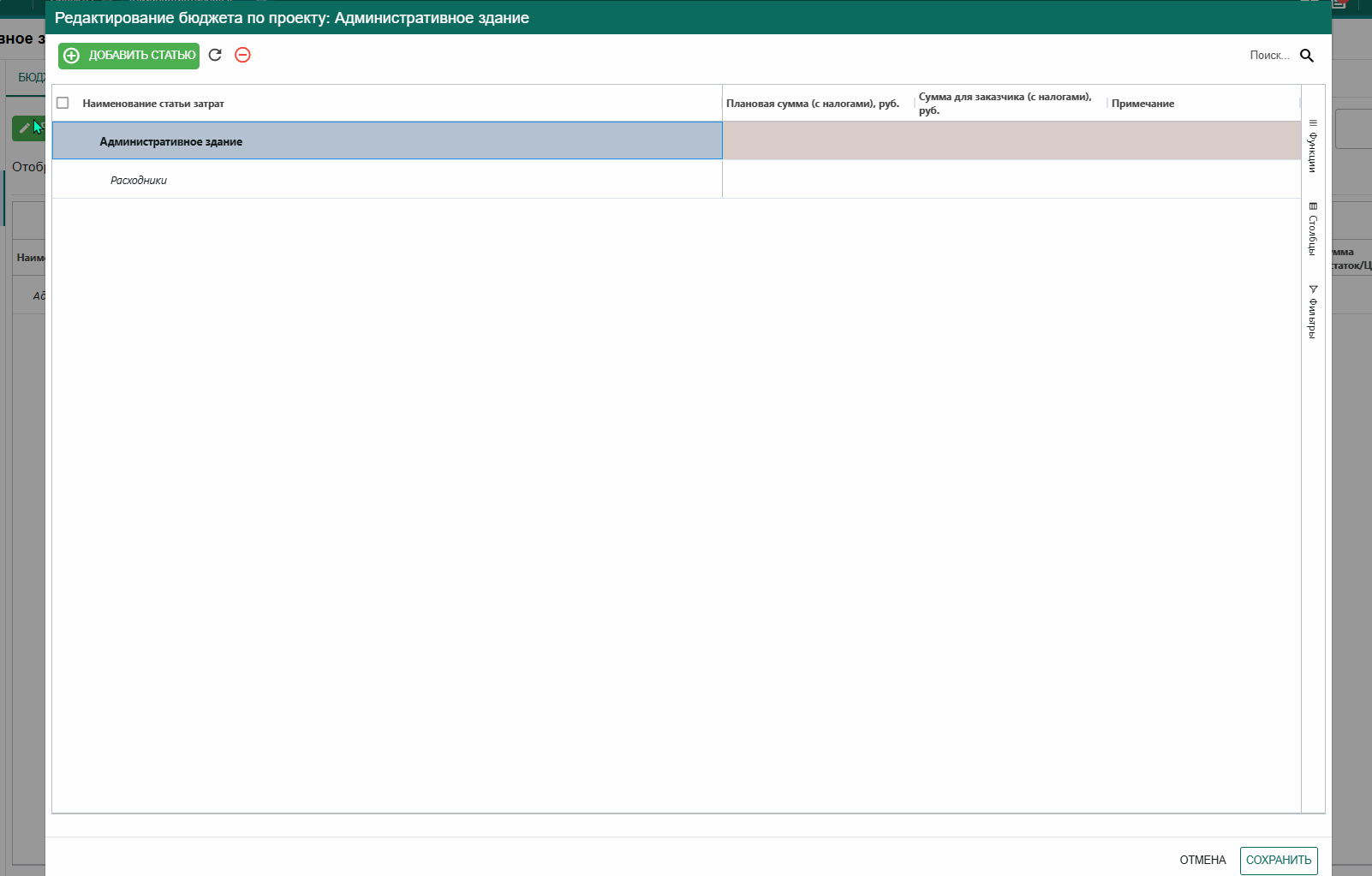 Если по материалам есть планируемые суммы, их так же можно внести для более точного отслеживания сумм затрат по объекту